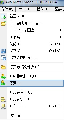 1、打开MT4后,点击菜单栏的文件选项卡,在下拉菜单中选择登录。